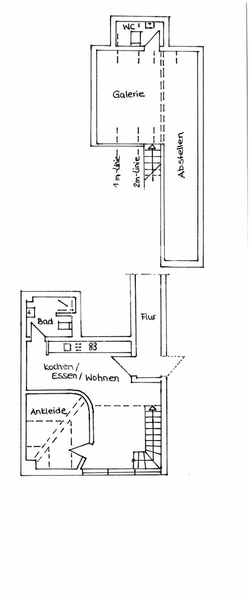 Ankleide, Flur, Bad, Wohn/Koch und Essbereich, Galerie und Wc.