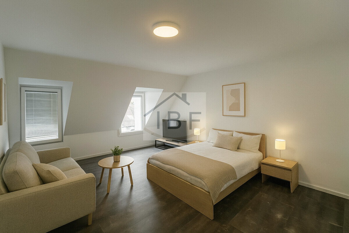 Der Grundriss umfasst zwei gut geschnittene Zimmer, darunter ein gemütliches Schlafzimmer sowie einen offenen Wohn-, Ess- und Küchenbereich, der bei Mietinteressenten besonders beliebt ist. Ein ruhig zur Rückseite gelegener Balkon ergänzt den Wohnkomfort und steigert die Vermietbarkeit zusätzlich.