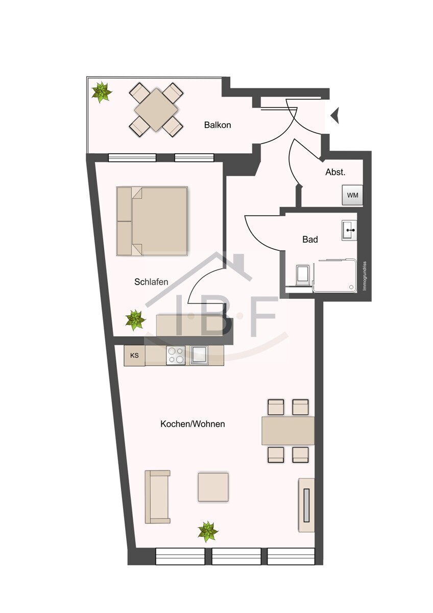 Der moderne, offen gestaltete Grundriss bildet eine optimale Mischung aus Komfort und effizienter Raumnutzung. Die verschmelzende Gestaltung von Küchen-, Wohn- und Schlafbereich spricht eine breite Zielgruppe an und sorgt für eine zuverlässige, langfristige Vermietbarkeit.