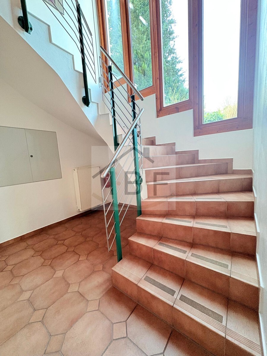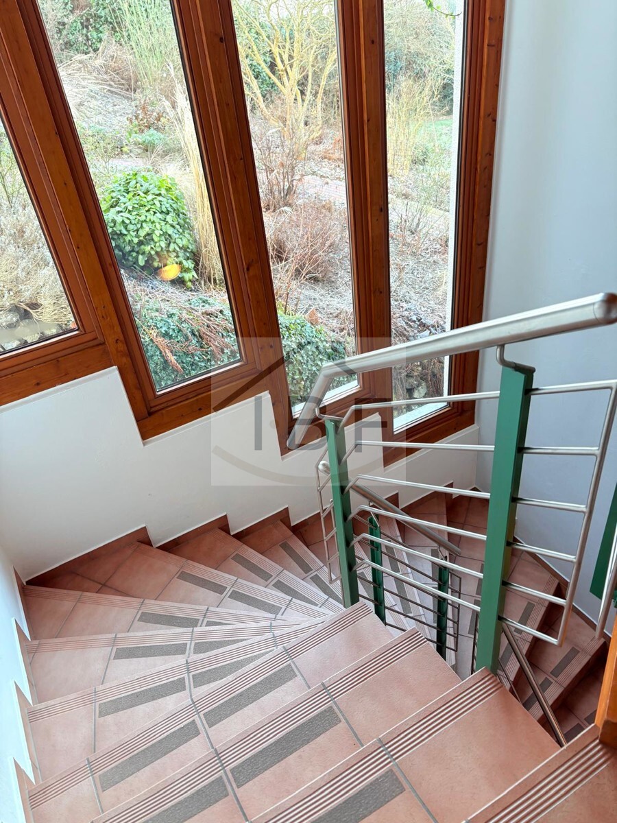 Vom Eingangsbereich aus führt eine Treppe in das Untergeschoss, in dem sich die gut geschnittenen Büroräumlichkeiten befinden. Im Jahr 2020 wurden die Böden in den Büroräumen mit hochwertigen Nagelfilz-Teppichböden erneuert und sorgen seitdem für eine angenehme Akustik und ein gepflegtes Erscheinungsbild.